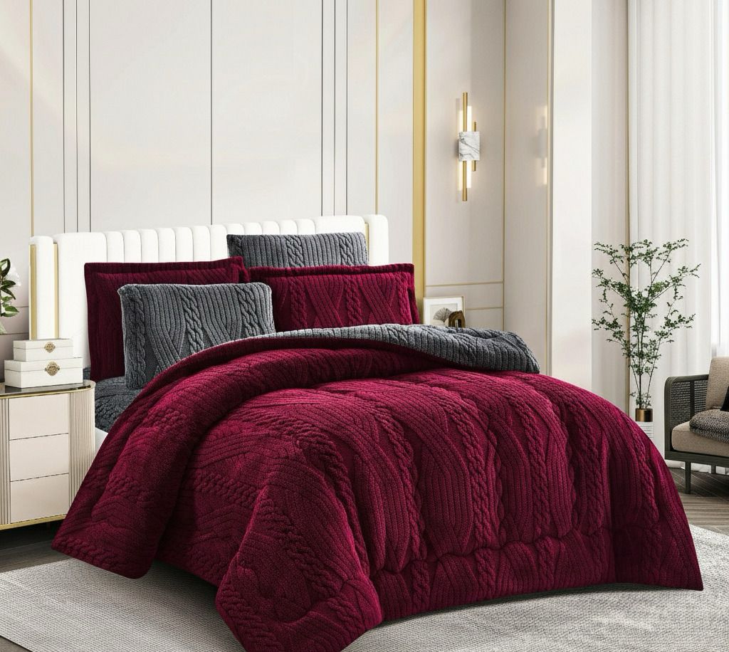 لحاف فندقي شتوي دبل فيس مع 4 قطع وملف فرشة