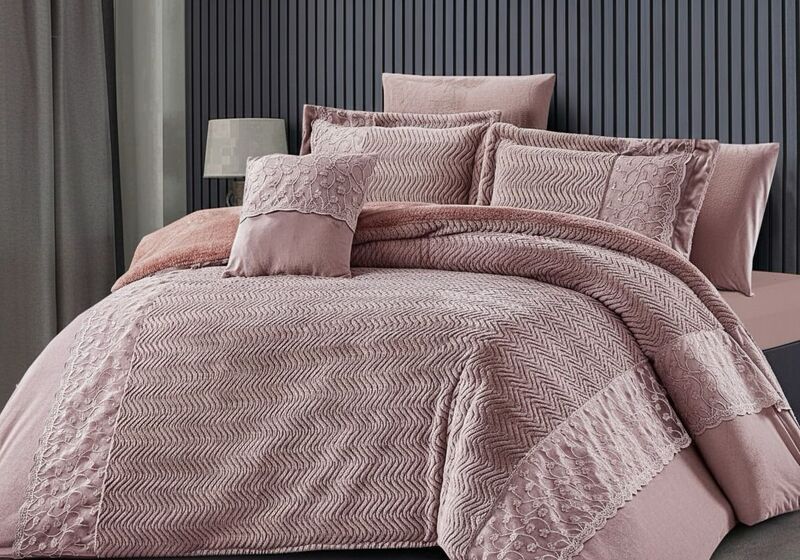 اللحاف الفاخر لمسة من الدفء والهدوء لغرفة النوم، معززاً بتصميم منسوج فريد.